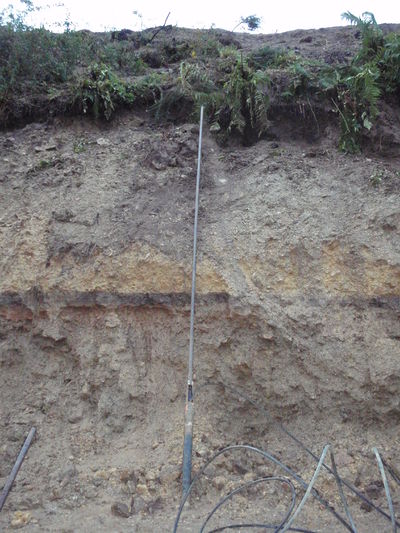 remblai sandwich présentant un contraste de perméabilité entre la couche noire imperméable et la couche ocre perméable